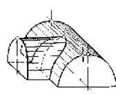В практике архитектурного проектирования существуют поверхности составного вида, которые отличаются от простых поверхностей тем, что они состоят из нескольких отсеков поверхностей. Все выше приведённые поверхности являлись простыми поверхностями. Составные поверхности могут спрягаться как гладко (рис.10) , когда каждая кривая поверхность на участке стыка изменяется плавно, так и не гладко (рис. 8-9). Рассмотрим несколько примеров составных поверхностей составных поверхностей, образованных отсеками гиперболического параболоида и эллипсоида вращения.