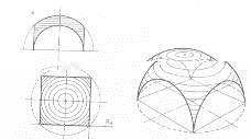 На рис.3 приведен вспарушенный свод, основой этого свода является четыре плоскости, которые отсекают от полусферического сегмента четыре части. Свод имеет четыре опоры.