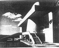 На рис.2 показаны архитектурные членения аналогичной поверхности покрытия выставочного зала (Париж 1958год) подчеркивают конструктивную схему сооружения, его тектонику, нервюру каркаса, опираются на три жестко связанные образующие АО,ВО,СО, сходясь к трем опорам.