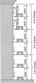 Схема провiшування вiконних прорiзiв фасаду: 1 тАФ маяки; 2 тАФ висок; 3 тАФ горизонтально натягнутий шнур