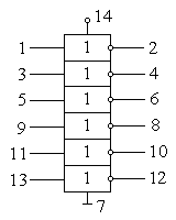 | Шесть логических элементов с буферным выходом | ||||||||||||||||||||||||||||||||||||