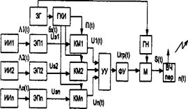Величины С1, С2, С3, Сн преобразуются датчиками (Д), вх. сигналы датчиков поступают на первичные модуляторы (М тАУ АИМ, ШИМ, ФИМ, КИМ).