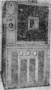 Заданная концентрация пыли в камере достигается вводом в камеру определенного количества пылевой смеси и циркуляции воздуха. После установки испытываемого изделия пылевая смесь насыпается в количестве 0,5 л на плоскость стола, дверь камеры плотно закрывается и запускается вентилятор. Камера КП-ЗУ-0,5 характеризуется следующими техническими данными: скорость воздушного потока в камере регулируется в пределах от 1 м/сек до 15,8 м/сек; температура в камере-от +20В±5 до 50В°С; максимальный вес испытываемого изделия 50 кг; максимальные габариты испытываемого изделия 500X500X500 мм. В комплект установок с камерами большего полезного объема, помимо собственно камеры, входит стойка управления и электроталь для установки крупногабаритных и тяжелых изделий на стол. Со стойки управления производится управление электродвигателем вентилятора (пуск, останов, изменение скоростей, реверс); переход с ручного на автоматическое управление температурным режимом камеры; управление открыванием и закрыванием двери с помощью электродвигателя и т. д.