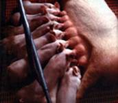 Индивидуальный отбор свинок и хрячков проводили от селекционной группы свиноматок, отвечающих требованиям целевого стандарта. О степени консолидированности гомозиготности селекционируемого стада по воспроизводительной способности можно судить по генетической изменчивости многоплодия, молочности, количеству поросят в два месяца и массе гнезда. Если в начале работы со стадом генетическая изменчивость этих признаков была 13,5тАУ26,1%, то в стадии завершения тАФ всего 5,7тАУ11,2%.