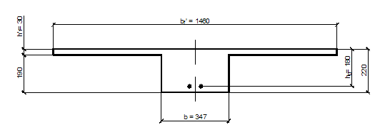 Сечение тавровое с полкой в сжатой зоне. Вычисляем: