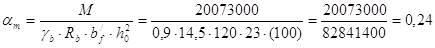 при этом в расчет вводится вся ширина полки b/f = 120 см; расчетная ширина ребра b=120-6*16=24 см.