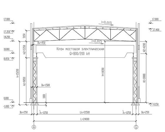 Геометрическая схема поперечной рамы здания представлена на рисунке 1.1.