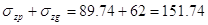 = 89.74 + 62 = 151.74 кПа < R = 166,87 кПа