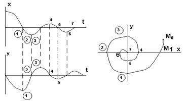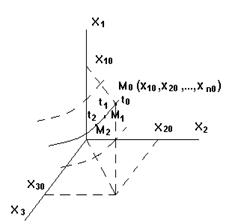 в любой момент времени характеризует состояние (фазу) системы и определяет координаты системы имеющей n тАУ осей и могут быть представлены как координаты некоторой (изображающей) точки М (рис. 2).