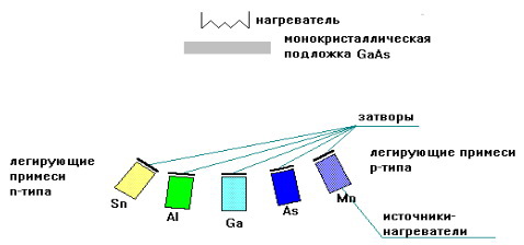 Подбором температуры нагревателей и подложки получают пленки со сложным химическим составом. Дополнительное управление процессом наращивания осуществляется с помощью заслонок, расположенных между нагревателем и подложкой. Использование этих заслонок позволяет резко прерывать или возобновлять попадание любого из молекулярных пучков на подложку.