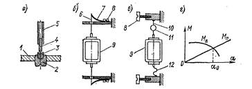 Рис. 1.1. Способы установки подвижной части прибора: а тАФ на оси; б тАФ на растяжках; в тАФ на подвесе
