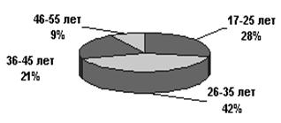 Рассмотрим социально-демографический портрет посетителей салонов красоты г Новосибирск. Типичные посетители салонов красоты тАФ молодые мужчины и женщины (в возрасте до 35 лет) с высшим образованием, каждый второй тАФ женат или замужем [диаграммы. 1тАФ4].