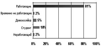 Большинство посетителей салонов красоты г Новосибирск тАФ люди работающие. Чаще всего это специалисты с высшим образованием, каждый пятый посетитель тАФ менеджер высшего звена, а каждый четвертый тАФ служащий [диаграммы 7тАФ8].