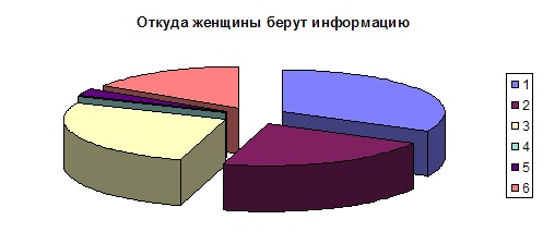 Чтобы наглядно представить откуда женщины берут информацию, представим процентные данные таблицы в виде диаграммы.