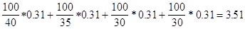 10/10*0.07+10/10*0.07+10/10*0.07+10/8*0.07=0.31;