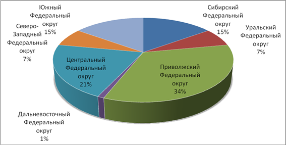 Рисунок 1. - Доля Федеральных округов в производстве молока-сырья [7, с.91].