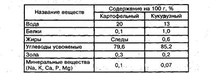Таблица 1. Химический состав крахмала
