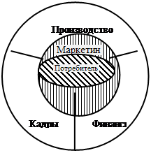 На представленном ниже рисунке маркетинг показан как одна из равноправных основных функций хозяйственной деятельности фирмы. Однако на многих российских промышленных предприятиях, имеющих маркетинговую структуру, функциональная значимость службы маркетинга все еще неравноценна значимости других основных служб. И уж тем более она не рассматривается как генеральный интегратор всех структурных подразделений фирмы для достижения стабильных рыночных успехов.