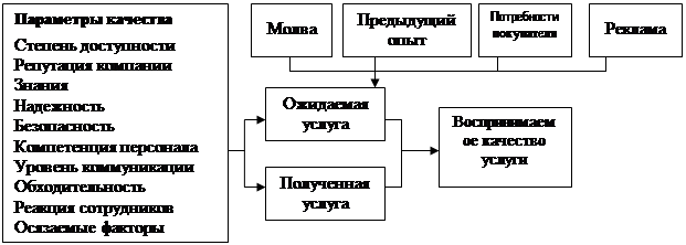 При оценки уровня качества услуг необходимо учитывать также экономические показатели, характеризующие стоимость услуги, затраты на её разработку и представление. Ключевые критерии воспринимаемого качества услуги представлены в таблице 1.1.