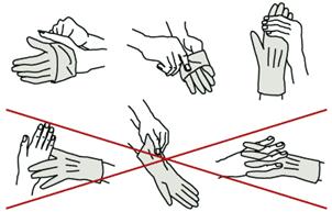 4. Осторожно расправить манжету перчатки на руке до запястья;
