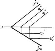 Все фронтальные линии плоскости параллельны между собой, а их фронтальные проекции параллельны фронтальному следу плоскости. Фронтальный след плоскости тАФ одна из фронтальных линий (рис. 66).