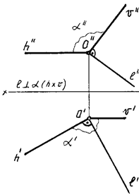 Поэтому, проводя перпендикуляр к плоскости, необходимо брать в этой плоскости две такие прямые: горизонталь и фронталь.