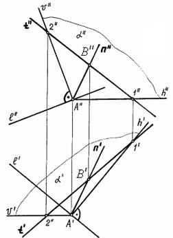 Построенная прямая (n', n'') является искомым перпендикуляром к плоскости .