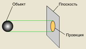 Отже, проекцiя - це зображення предмета, "вiдкинуте" на площину за допомогою променiв. Спроекцiювати предмет тАФ це означаi зобразити його на площинi (рис.1).