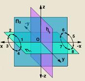 Розглянемо просторову модель координатноi площини проекцiй. Для визначення положення геометричноi фiгури в просторi i виявлення ii форми по ортогональних проекцiях найбiльш зручною i декартова система координат. Декартова система координат складаiться з трьох взаiмно перпендикулярних площин.