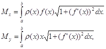 (x), то статические моменты этой дуги Mx и My относительно координатных осей Ox и Oy равны