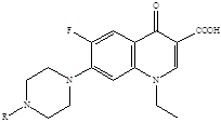 R = CH3 пефлоксацин цифран, ципринол, ципролет)