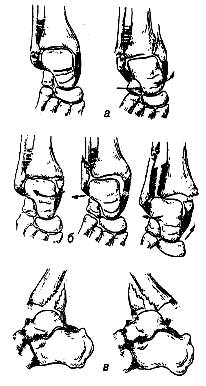 Рис. 33. Переломы таранной кости: а тАФ шейки,