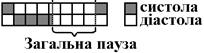 Серце як насос працюi циклiчно тАУ мають мiсце ритмiчне чергування систоли (скорочення) та дiастоли (розслаблення) вiддiлiв серця. В станi спокою ЧСС = 75 в хвилину, тривалiсть серцевого циклу (i) складаi 0,8 с. Чергування систоли та дiастоли рiзних вiддiлiв серця можна представити у виглядi схеми (одна клiтинка = 0,1 с):