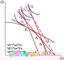 , а структуры производства и потребления представляют соответственно точки E2 и С2. Поскольку РF,C < РF,B, то tg