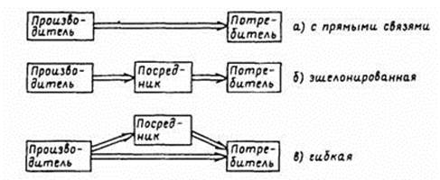 - Логистические системы с прямыми связями. В этих логистических системах материальный поток проходит непосредственно от производителя продукции к ее потребителю, минуя посредников (рис. 4 а).