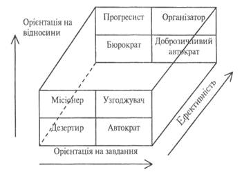 3) доброзичливий автократ тАФ менеджер, який маi високий рiвень орiiнтацii на завдання i низький тАФ на стосунки в ситуацii, що спричиняi таку поведiнку. Тому такий менеджмент бiльш ефективний. Це людина, яка знаi, чого хоче i знаi, як отримати необхiдне, не викликаючи образи чи обурення;