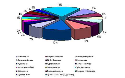 Анализ общей ситуации показывает, что в целом число предприятий на рыке оборудования, выпускаемого ОАО ВлУралхиммашВ», превышает 35.
