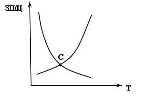 Цена рабочей силы гибко реагирует на потребности рынка, увеличиваясь или уменьшаясь в зависимости от спроса и предложения, а безработица невозможна до тех пор, пока на рынке существует равновесие. Равновесная ставка заработной платы и соответственно равновесный уровень занятости для данного вида труда определяются на пересечении кривых спроса и предложения на труд (точка С).