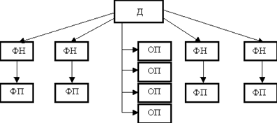 Д- директор; ФН - функциональный начальники; ФП тАУ функциональные подразделения; ОП - подразделения основного производства.