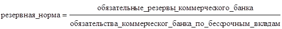 тАЬОпределенный проценттАЭ обязательств по вкладам, который коммерческий банк должен держать в резерве, известен по название резервной нормы. Данная норма является отношением между размером резервов, которые должен иметь коммерческий банк, и выданными обязательствами по вкладам. Это отношение таково: