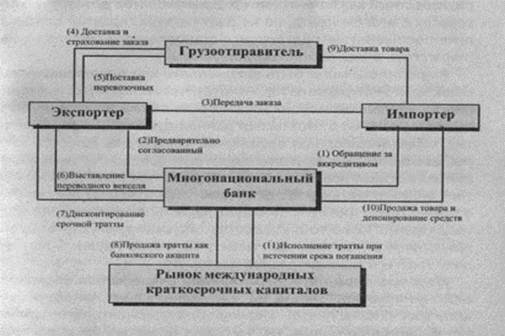 Банк также позволяет импортеру и экспортеру обходить многие трудности в работе с иностранной валютой и на рынке долгосрочных капиталов. Импортер может платить в долларах и вычислять свои доходы от отсроченного платежа, исходя из американской нормы прибыли. Способность банка дисконтировать тратту на рынке международных краткосрочных капиталов позволяет неограниченно поставлять денежные средства для финансирования международной торговли.