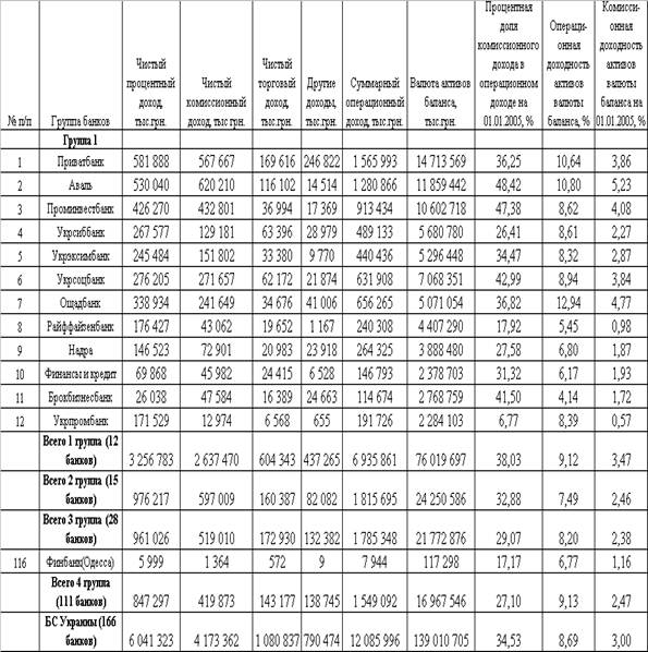 - анализ влияния тарификации комиссий в операциях банковских услуг на роль комиссионных доходов в общих доходах коммерческих банков Украины;