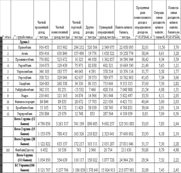 Практическая ценность полученных результатов дипломного исследования по основным факторам влияния характеристик коммерческого банка и его рыночной тарифной политики на уровень комиссионных доходов состоит в том, что в современных условиях конкуренции 12 основных банков Украины с остальными 145 банками уровень комиссионных доходов имеет стандартный уровень 27 тАУ 30% в операционном доходе банка и поднимается до 35 тАУ 38% в 12 системообразующих банках Украины, которые занимают более 50% банковского рынка и конкурентно формируют тарифную политику остальной банковской системы, создавая для себя определенные Влмонопольные нишиВ» высокодоходных комиссионных операций.