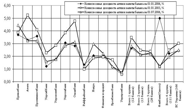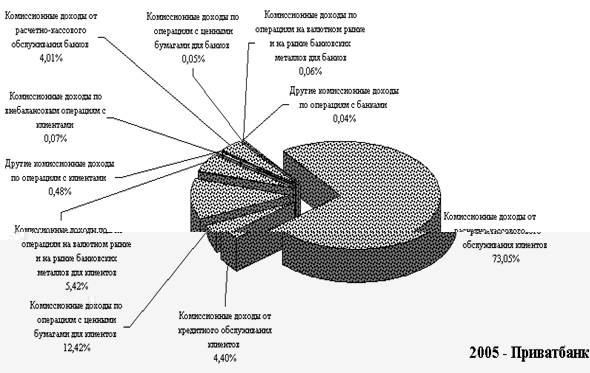 Таким образом, суммарная процентная доля указанных 4-х секторов комиссионных доходов АКБ ВлПриватбанкВ» в 2005 тАУ 2006 годах составила 97,6-99,34 % и определяет стратегическое направление развития комиссионных доходов в банке.