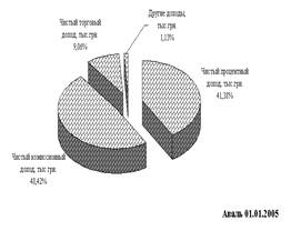 На рисунке 2.5 представлены данные по поквартальной динамике абсолютных величин комиссионных доходов и комиссионных затрат в АКБ ВлПриватбанкВ» в 2003 тАУ2006 годах. На рисунках 2.6 тАУ 2.9 представлена структура комиссионных доходов АКБ ВлПриватбанкВ» в 2003 тАУ2006 годах.