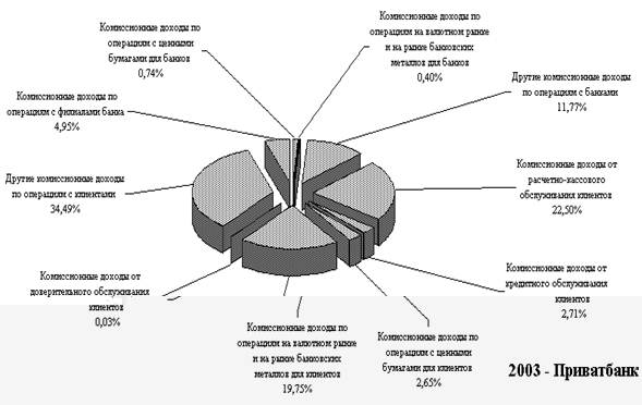 Как оказывает совместный анализ графиков, приведенных на рисунках 2.5 тАУ 2.9 динамика и структура комиссионных доходов АКБ ВлПриватбанкВ» в 2003 тАУ 2006 годах характеризуется следующими показателями: