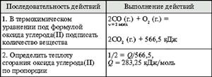 В термохимических уравнениях в отличие от химических указывается тепловой эффект химической реакции и между левой и правой частями уравнения принято ставить знак равенства (=).