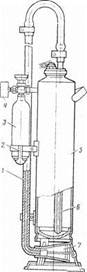 Рисунок 4 - Огнетушитель порошковый ОП -101- удлинитель; 2- кронштейн; 3-баллон с рабочим газом; 4- манометр; 5- корпус; 6- сифонная трубка; 7- насадок.