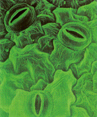 С02 поступает преимущественно через устьица, хотя небольшое количество, по-видимому, диффундирует через кутикулу и эпидермальные клетки.