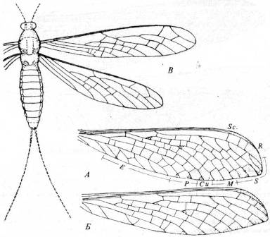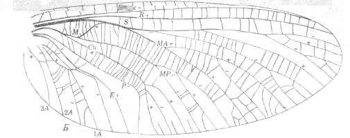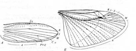 А. Переднее крыло (из Carpenter). Б. Заднее крыло (из Tillyard).